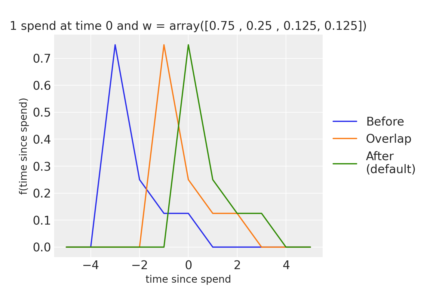 ConvMode.After: Applies the convolution with the “Adstock” effect, resulting in a trailing decay effect.