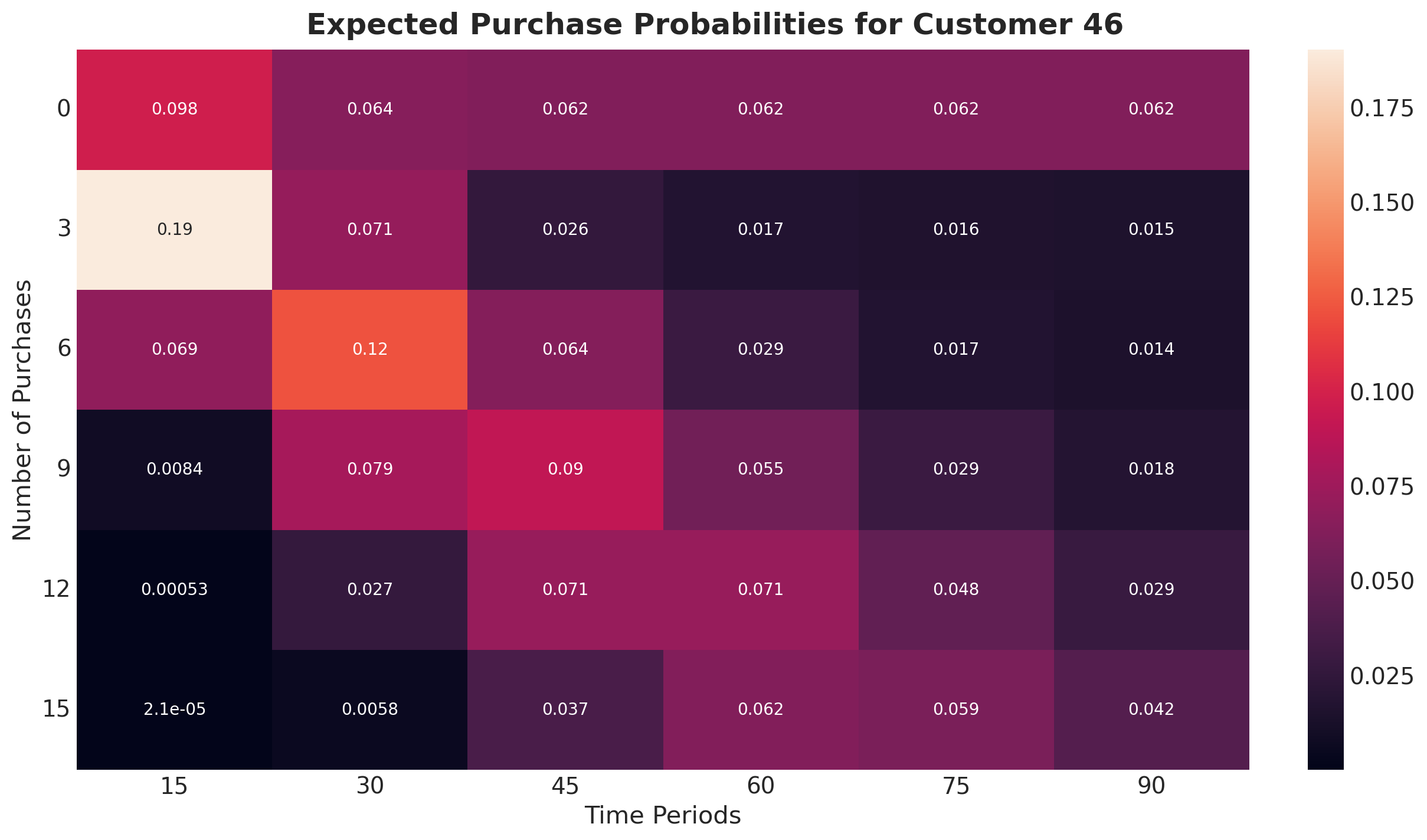 \[f(t_{j}-t_{j-1}| \lambda) = \lambda e^{-\lambda (t_{j} - t_{j - 1})}, \quad t_{j} \geq t_{j - 1} \geq 0\]Where \(t\) is the time period of the \(j\)th purchase.