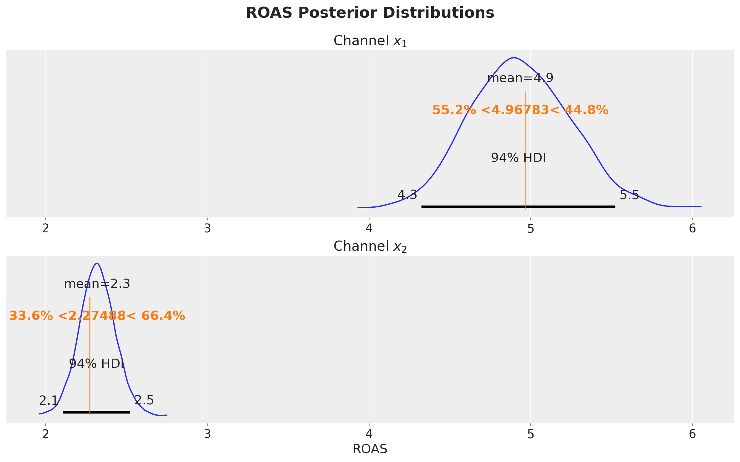 Budget Optimization: Allocate your marketing budget based on the parameters recover by the model, finding the spend distribution to maximizes the amount of contribution given a limited budget. See Budget Allocation with PyMC-Marketing.
