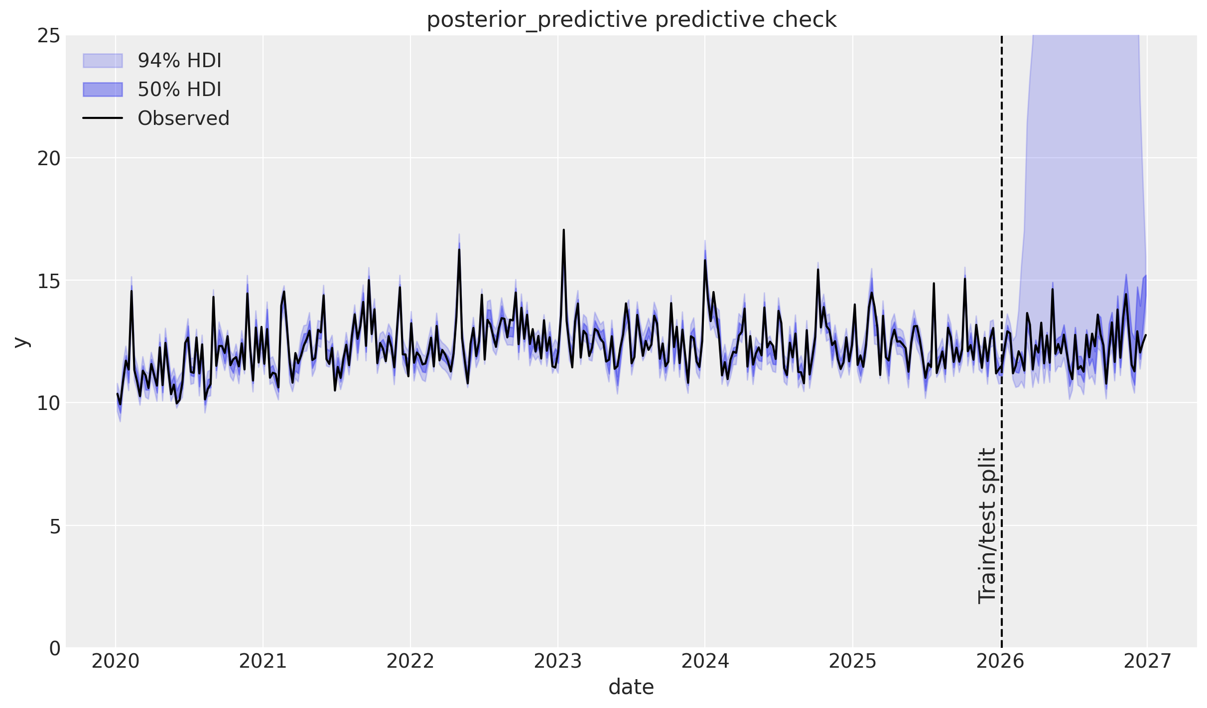 💡 Let’s try to refit the model with a shorter length scale prior mean of one year (52.18 weeks).